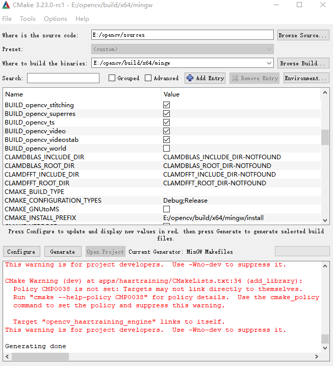 (3)生成opencv的Makefiles文件