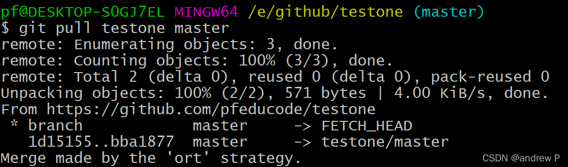 git pull <长裤别名或则URL> <分支名>