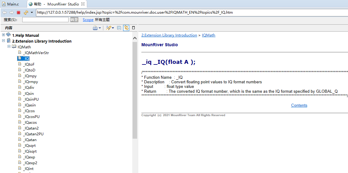 - 增加F1快捷键查询扩展库IQMath接口函数功能,用户可选中需要查询的IQMath函数字符,点击F1快捷键即可跳转到帮助文档中该函数说明位置: