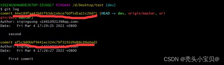 //日志,我们可以用来查看分支提交号,恢复误删的分支