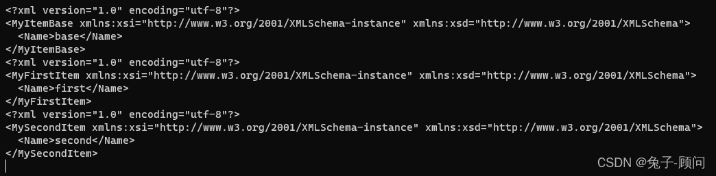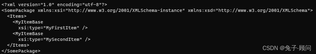 Console.WriteLine(GetXmlString<MyItemBase>(new MyItemBase(){Name="base"}));