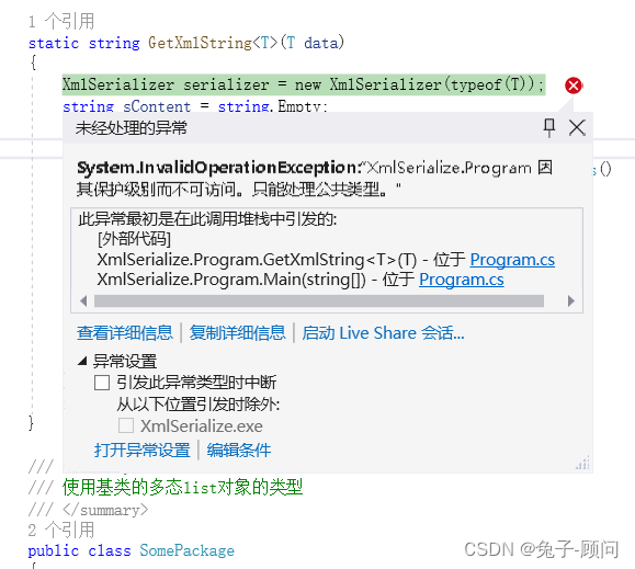 看似没什么问题,使用系统的序列化。可实际就无法序列化,还会提示这样一张图:
