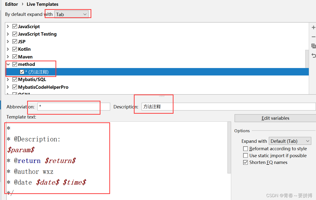 二、设置方法注释模板IDEA还没有智能到自动为我们创建方法注释,这就是要我们手动为方法添加注释 1、File-->Settings-->Editor-->Live Templates