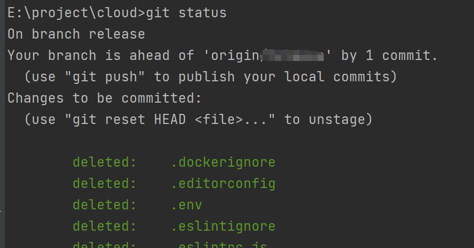 - 结果发现,project里面的所有文件都变成了红色,也即被删除的状态: