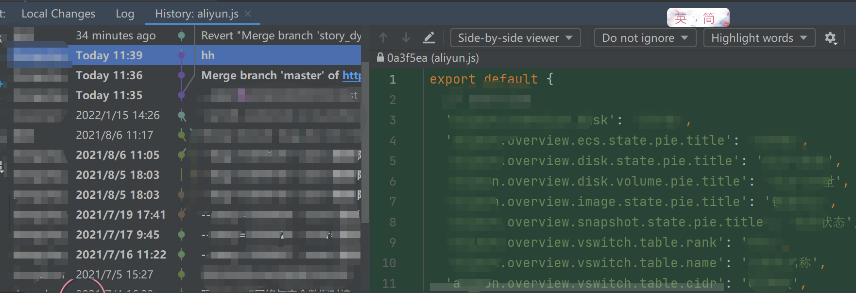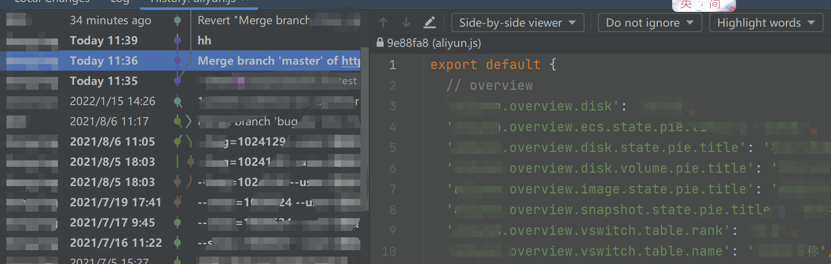 我觉得,这都不是我改的呀,是删掉.git/index.lock造成的吧。 于是,我就ctrl+z撤销了原来的操作 3. 结果发现,project里面所有的文件都变成了绿色,也即新增的状态 (我本来想重现的,可是撤销之后,发现恢复了正常。不知道怎么回事儿…但是不影响要讲的东西) 这些文件得处理了,不然还是不能拉分支 我觉得这文件跟远程分支上一样啊,我得提交了(如图"hh"那次提交)。而且,反正最后是两个分支merge,只有不同会被merge到目标分支上,所以没关系。 4. 于是,我提交了全部这些文件。然后push了远程分支,然后创建了mr,检查了不同的文件的确只有我想提交的  于是,我就merge了。 5. 结果,我发现所有的文件,利用“annotate with git blame”查看每一行的最新提交人,都是我; 而且,检查每个文件的git历史,都多了两次提交,一次全删,一次全增:   所以,怎样把这次的历史记录去掉呢?不然所有文件的最后提交人全变成了我,很难找到每行代码的实际开发人。