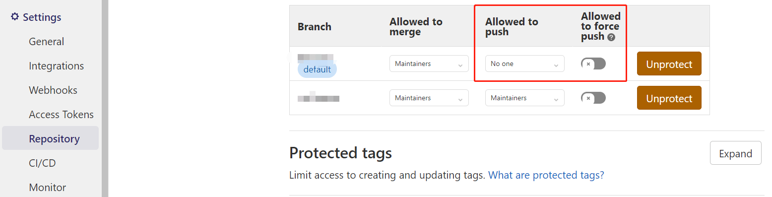 要push的分支branchName是protectd branch:  如果想push,要把这里的设置改掉。
