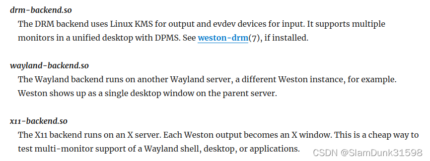 weston的显示后端有好几种,从源码里也可以看出,通过load_backend函数根据参数选择加载不同的backend。