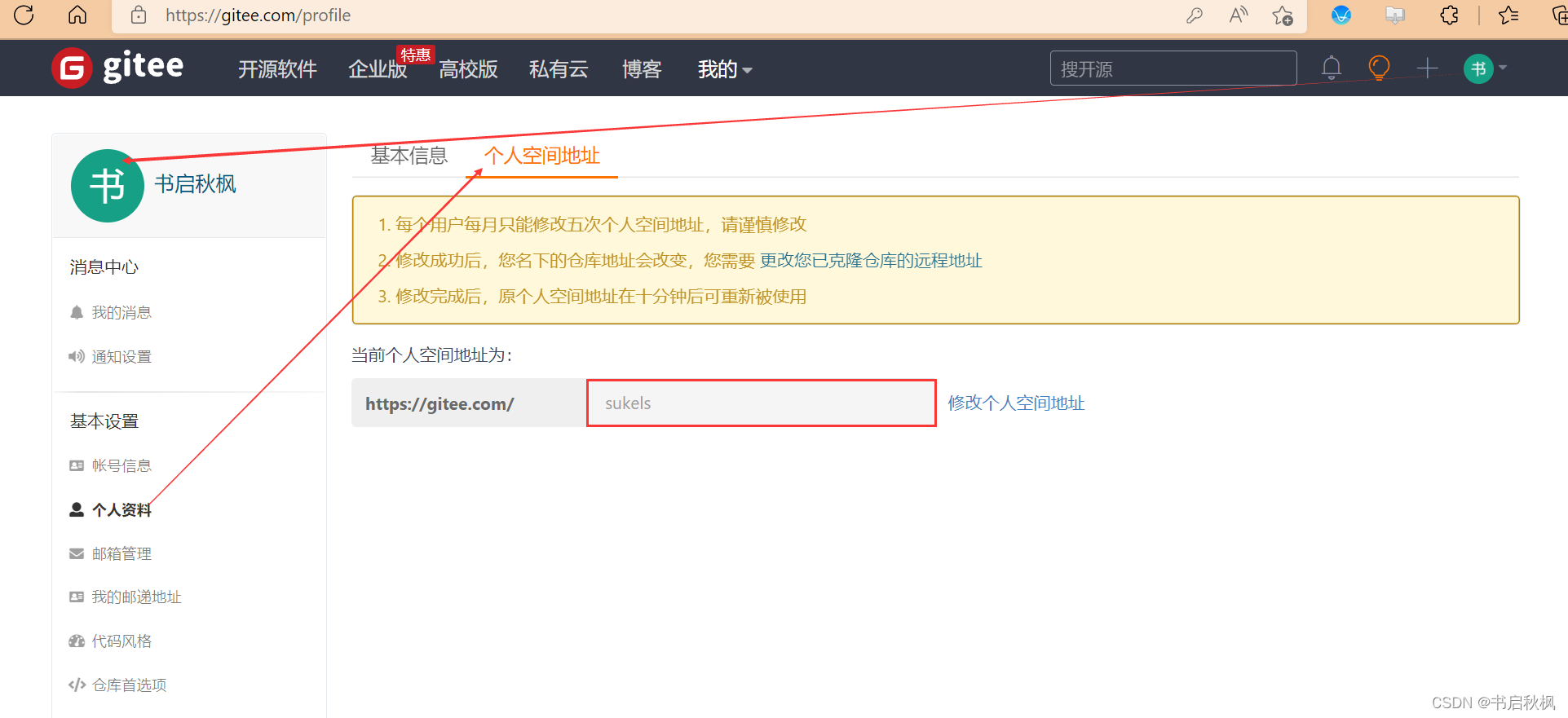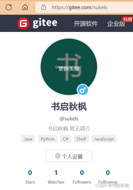 (1)注册一个Gitee项目托管平台的用户:sukels
