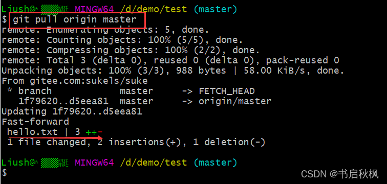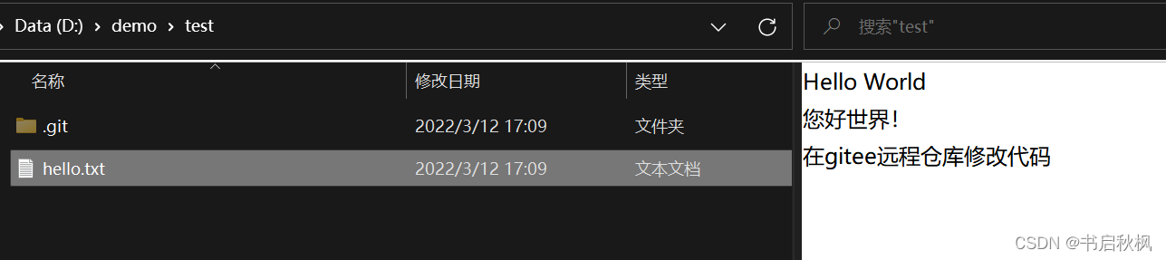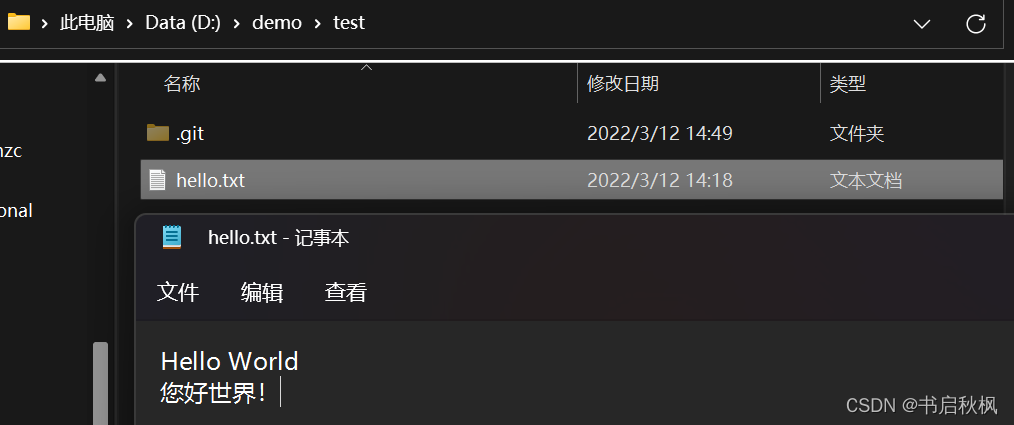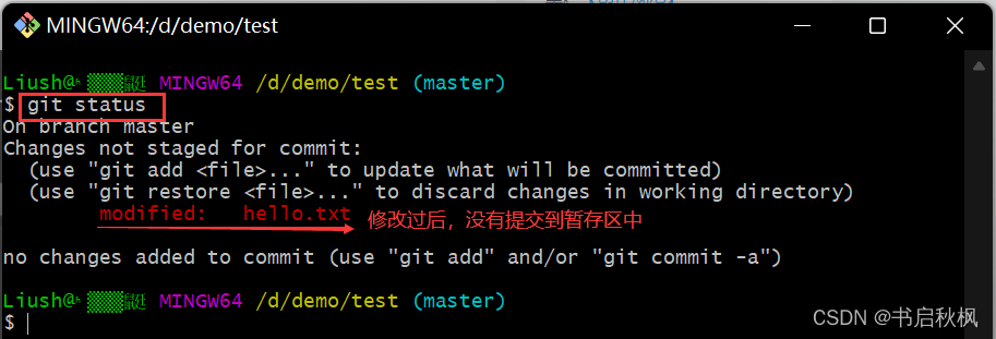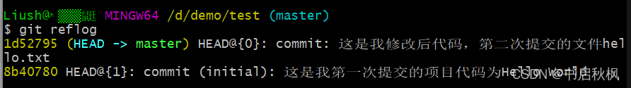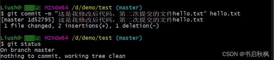 (4)再一次提交到本地仓库:git commit -m "...[自定义内容]..." hello.txt
