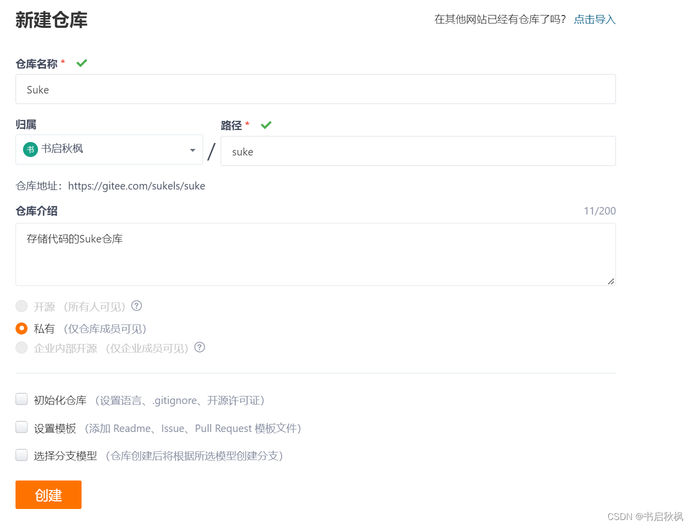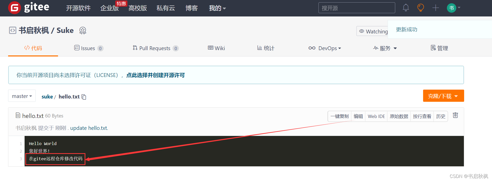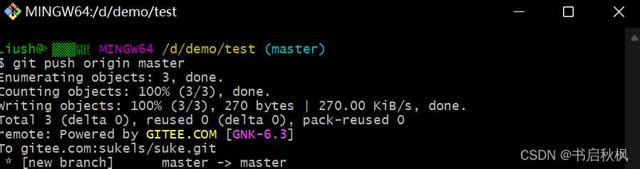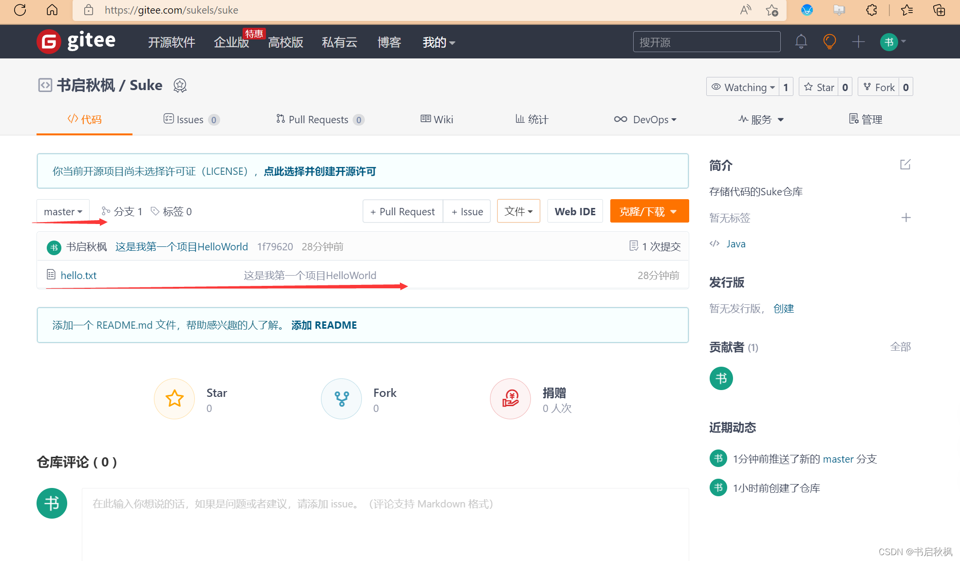 1.添加一个远程仓库:git remote add origin https://gitee.com/sukels/suke.git