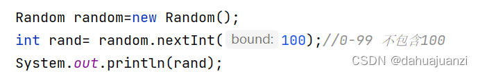 int rand= random.nextInt(100);//生成随机数0-99,不包含100