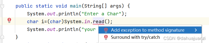 ?输入后read有警告,把鼠标放在read处,alt+回车会提示Add,选择即可修正