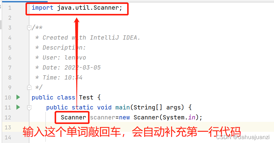 Scanner scanner=new Scanner(System.in);//System.in代表从键盘读入一个数据