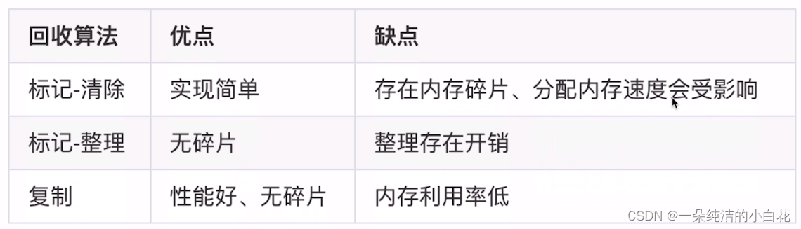 另外还有两种综合垃圾回收算法:分代收集算法、增量算法