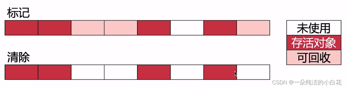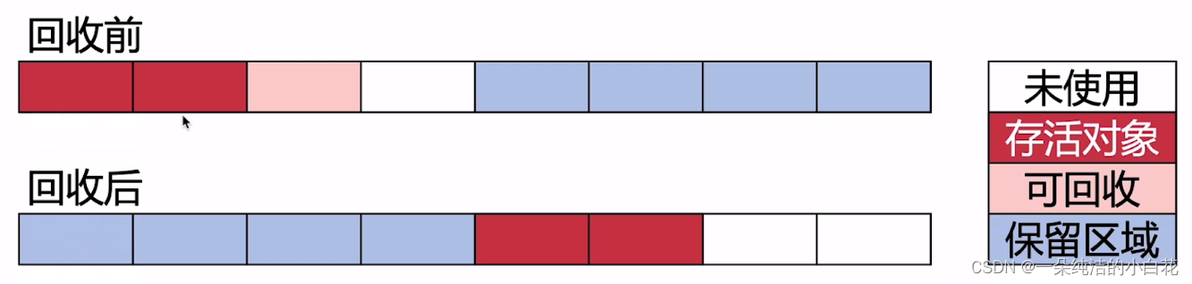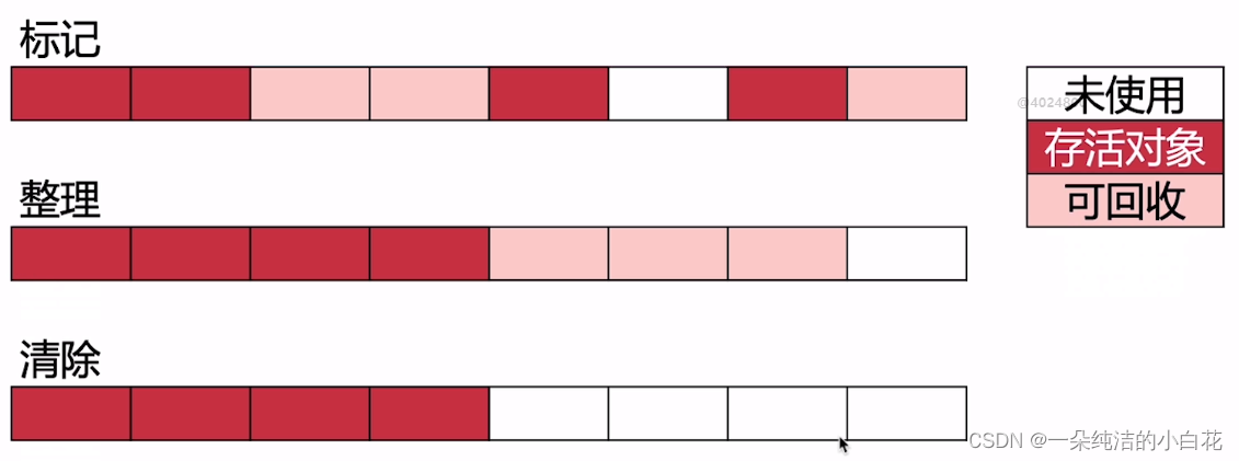 2.标记-整理(标记需回收的对象,把所有存活的对象压缩到内存的一端,清理掉边界外的所有空间)