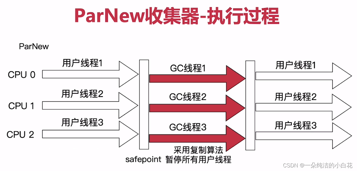 2.ParNew收集器:Serial收集器的多线程版本,主要和CMS收集器配合使用