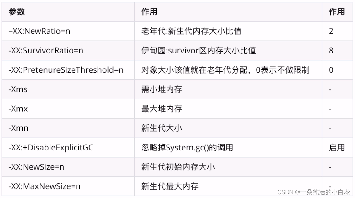 ? ? ? ? ? ? ? ? ? ?-XX:GCTimeRatio:设置吞吐量的大小,取值0-100,系统花费不超过1/(1+n)的时? ? ? ? ? ? ? ? ? ? ? ? ? ? ? ? ? ? ? ? ? ? ? ? ? ?间用于垃圾收集