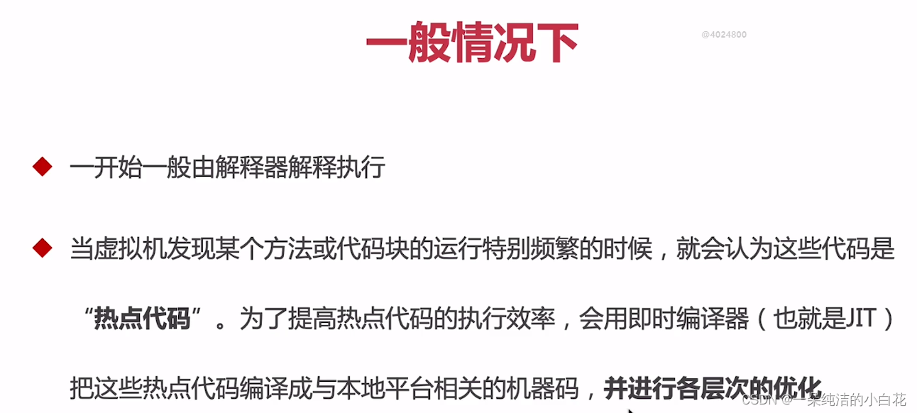 2.编译执行:把字节码编译成机器码,直接执行机器码(运行效率高一点,一般认为比解释执行快一个数量级;带来额外开销)