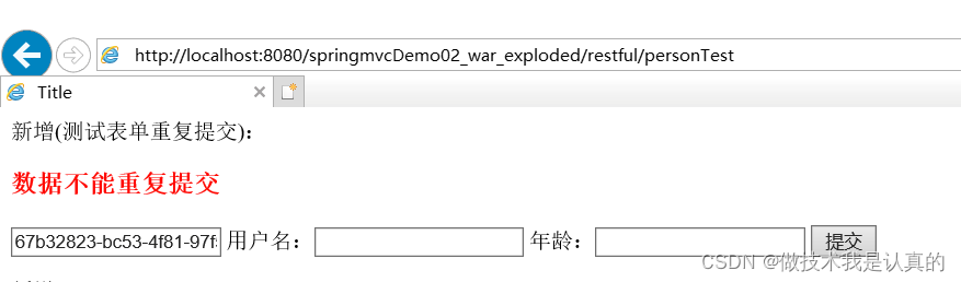- 表单正常提交后,浏览器回退后,重复点击提交表单