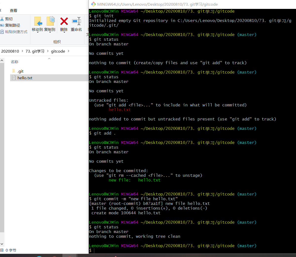 - 本地新建,执行之后的文件夹下会出现一个新的 .git目录,里面包含关于版本的所有信息。
