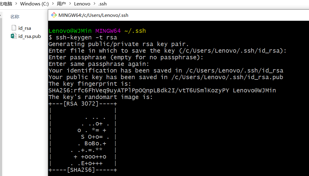 对应文件夹中生成了两个文件,其中后缀为 pub的为公钥,另一个就是私钥。