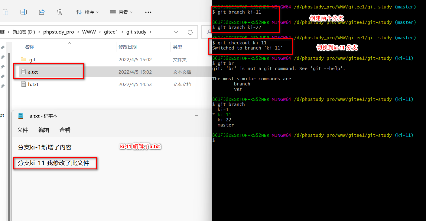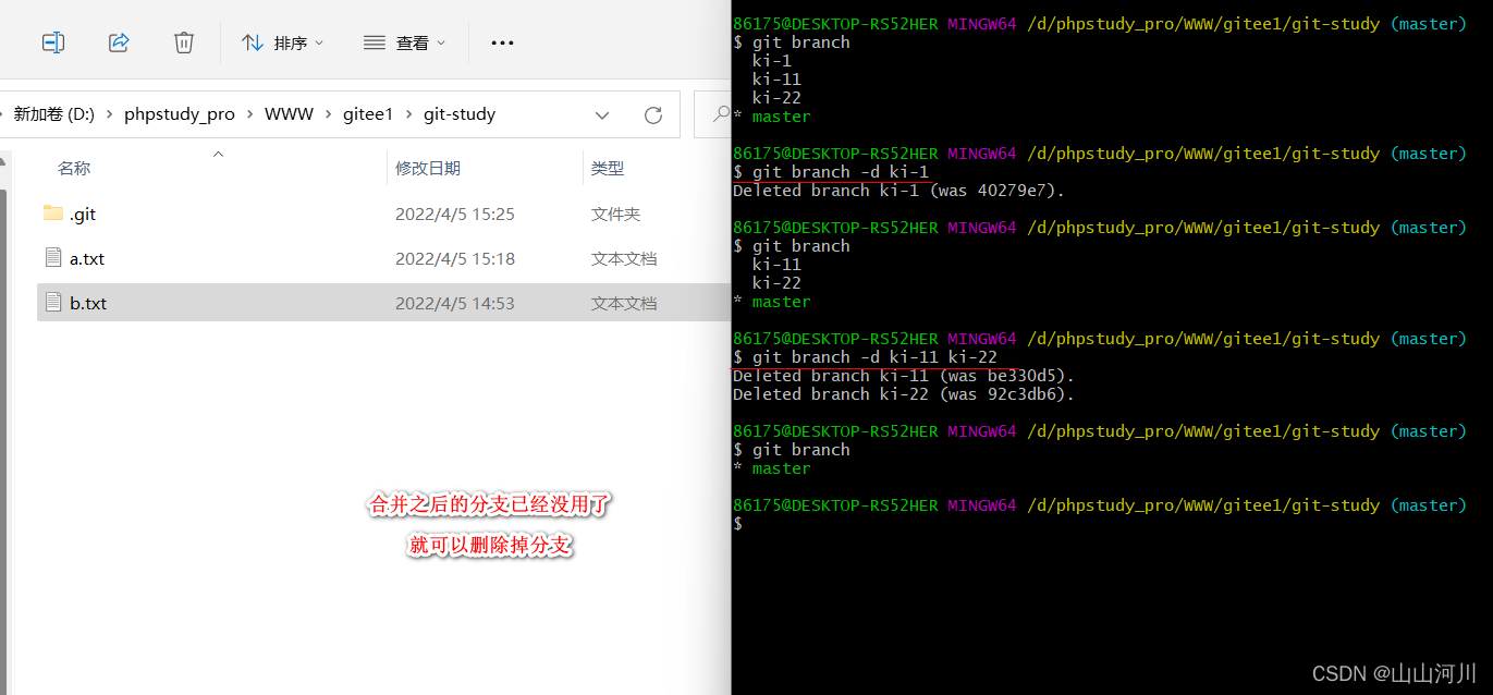 git branch -d ki-11 ki-22 删除分支