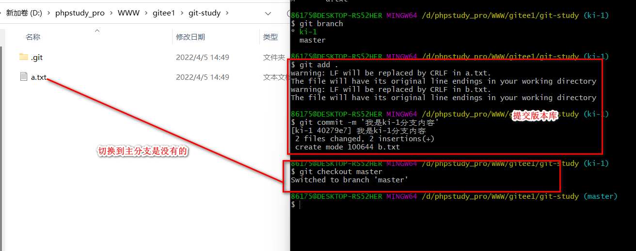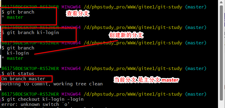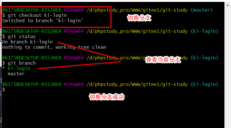 git checkout <分支名称> 切换分支