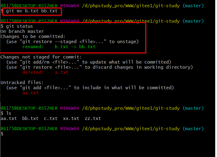 git mv b.txt bb.txt git重命名文件