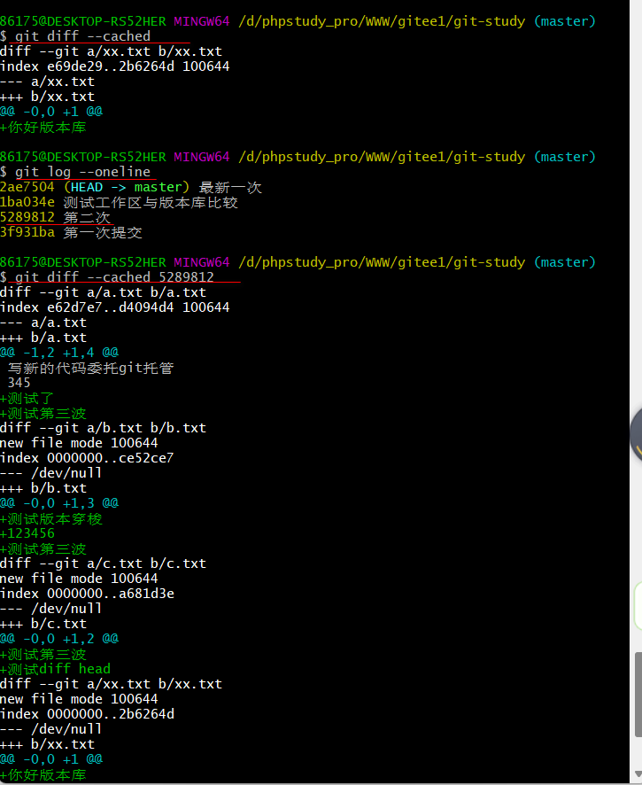git diff --cached 版本号 比较 指定版本库与暂存区比较