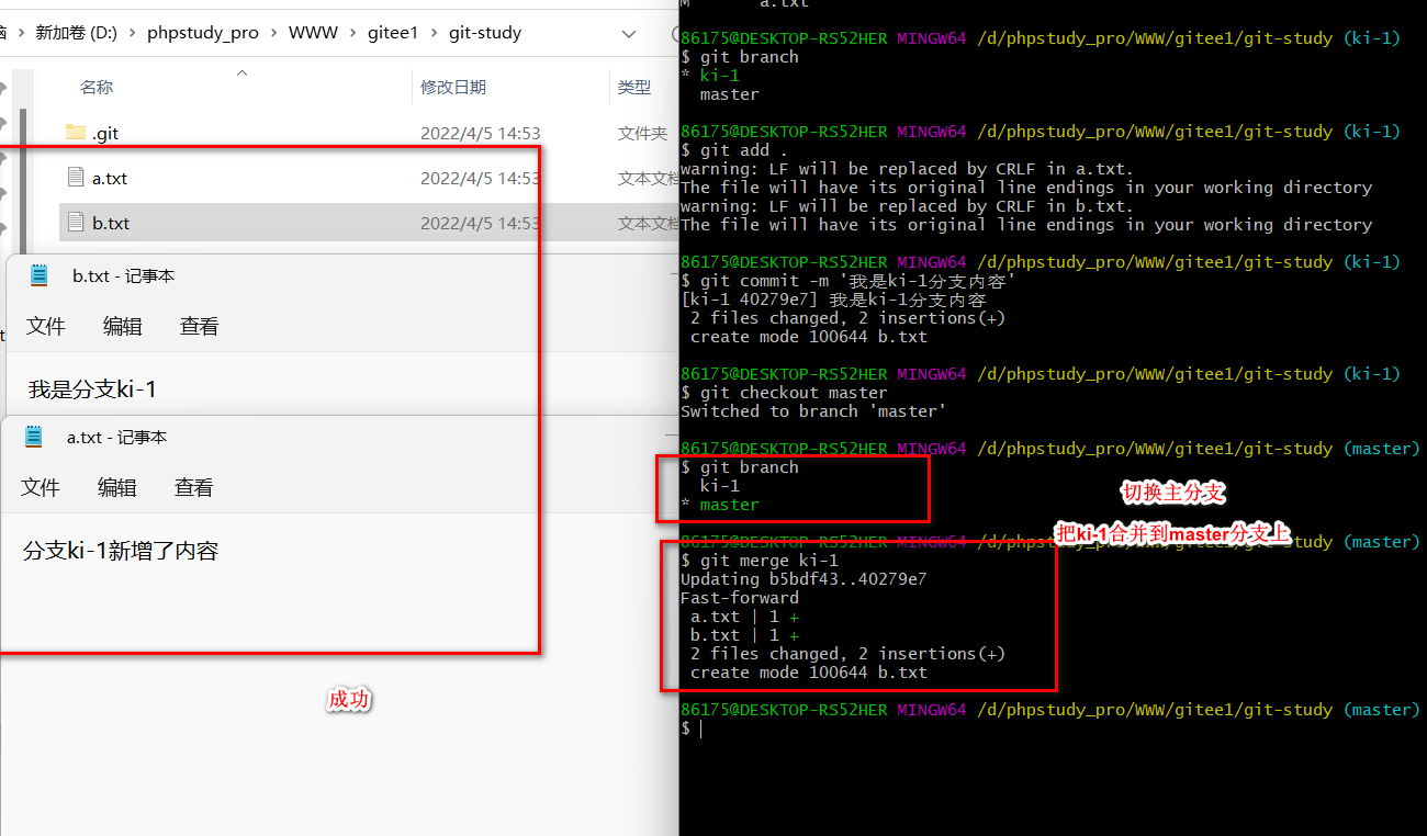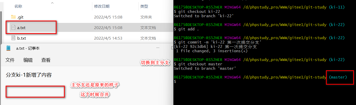 ?场景二? ?(两个分支修改同一个文件然后合并到主分支)