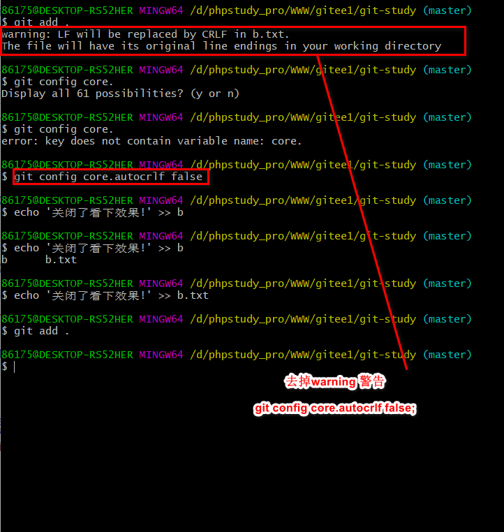 git config core.autocrlf true 不去掉改为true