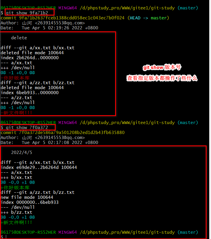 查看指定版本都干了些什么 能在里面看到删除 以及更改的内容