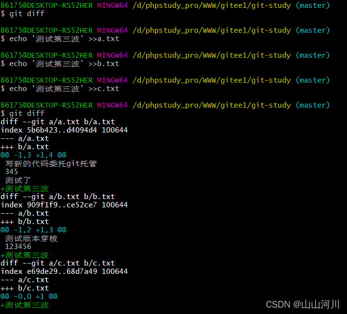 git diff 比较暂存区与工作区文件的不同