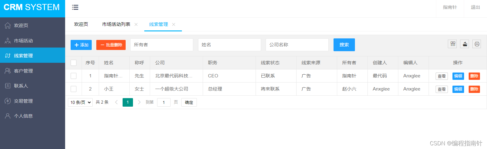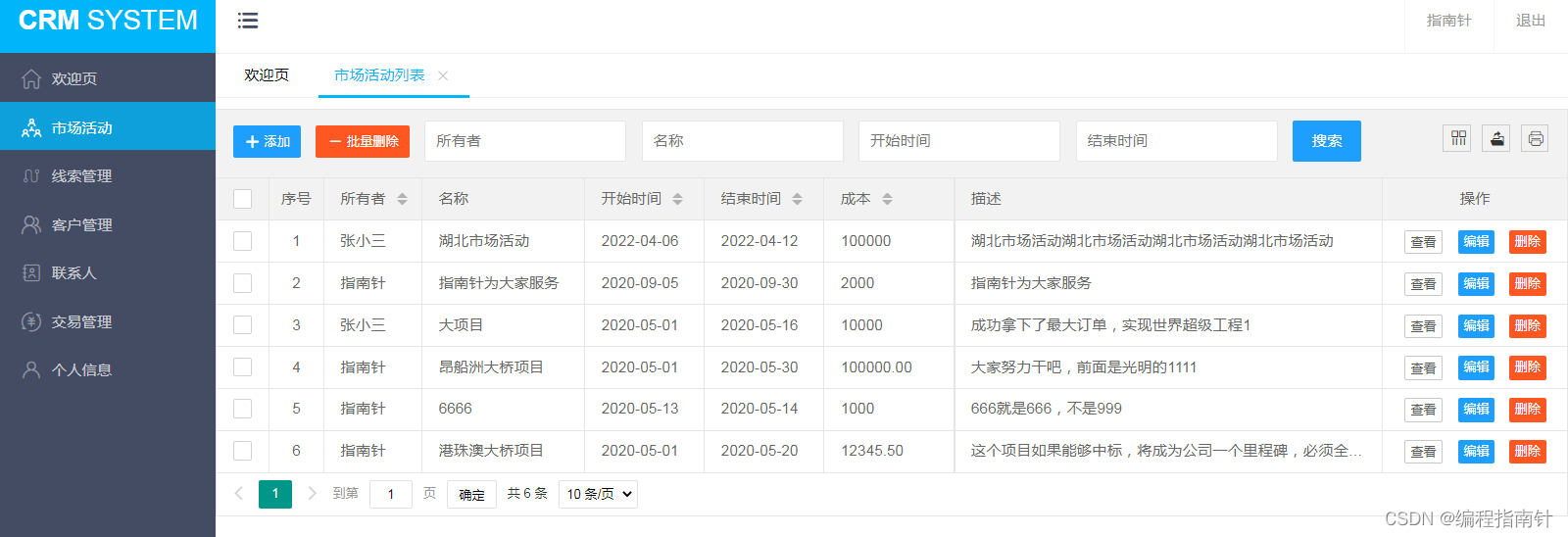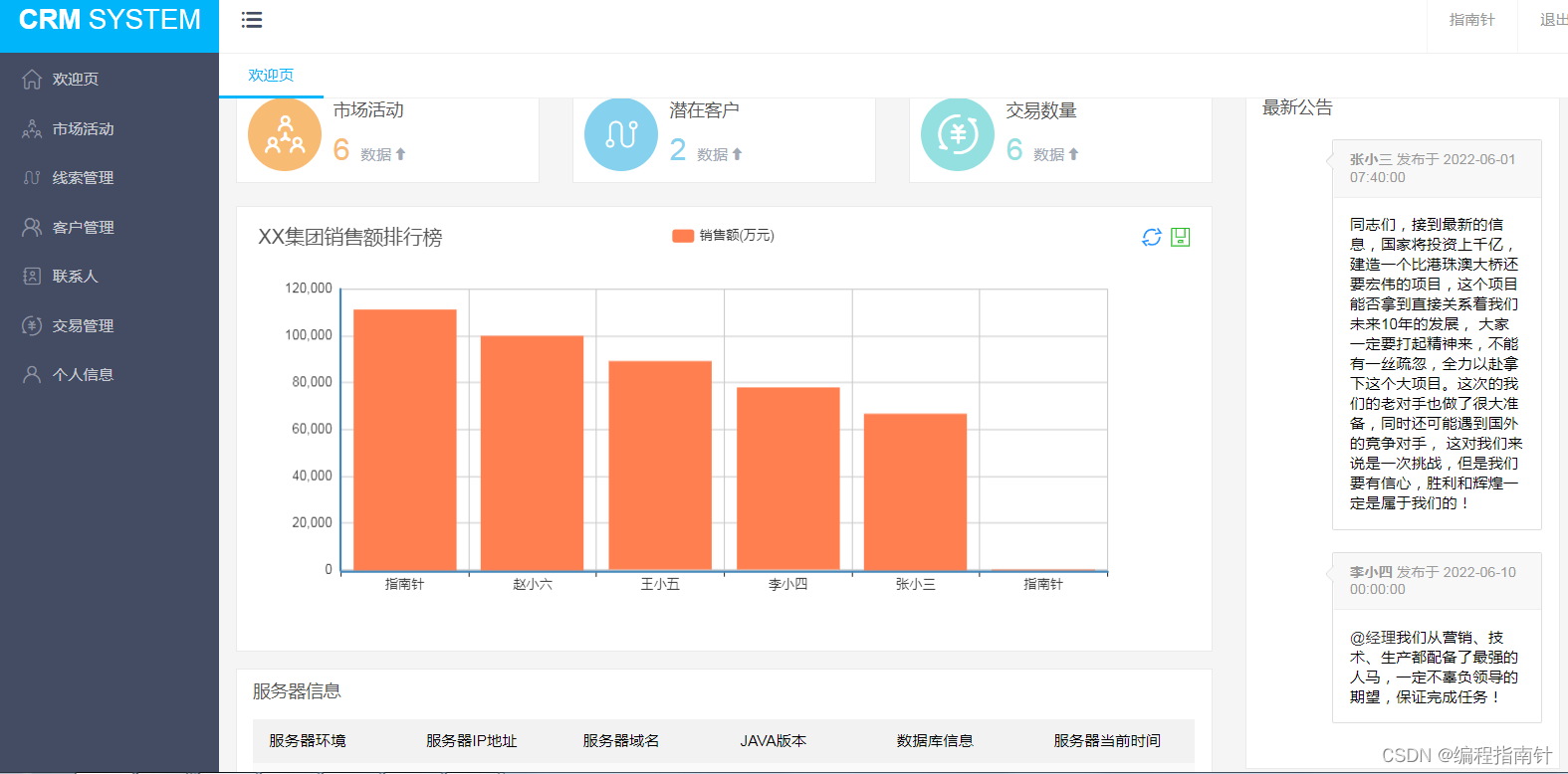 该项目主要基于JAVAWEB技术,开发了一套CRM客户关系管理系统,实现了用户登录,权限控制,数据统计,以及市场活动、线索、客户、联系人、合同的CRUD,使用Proxy实现Service层的动态代理,实现DAO层事务控制。
