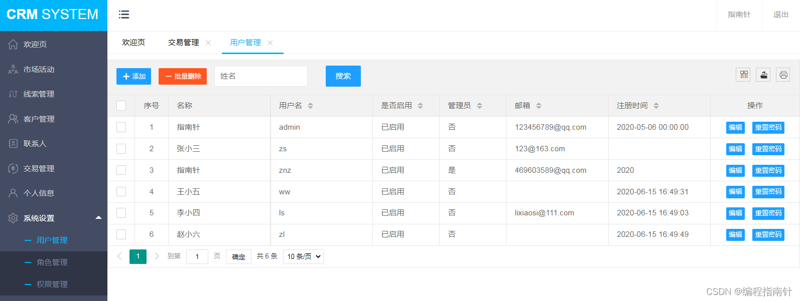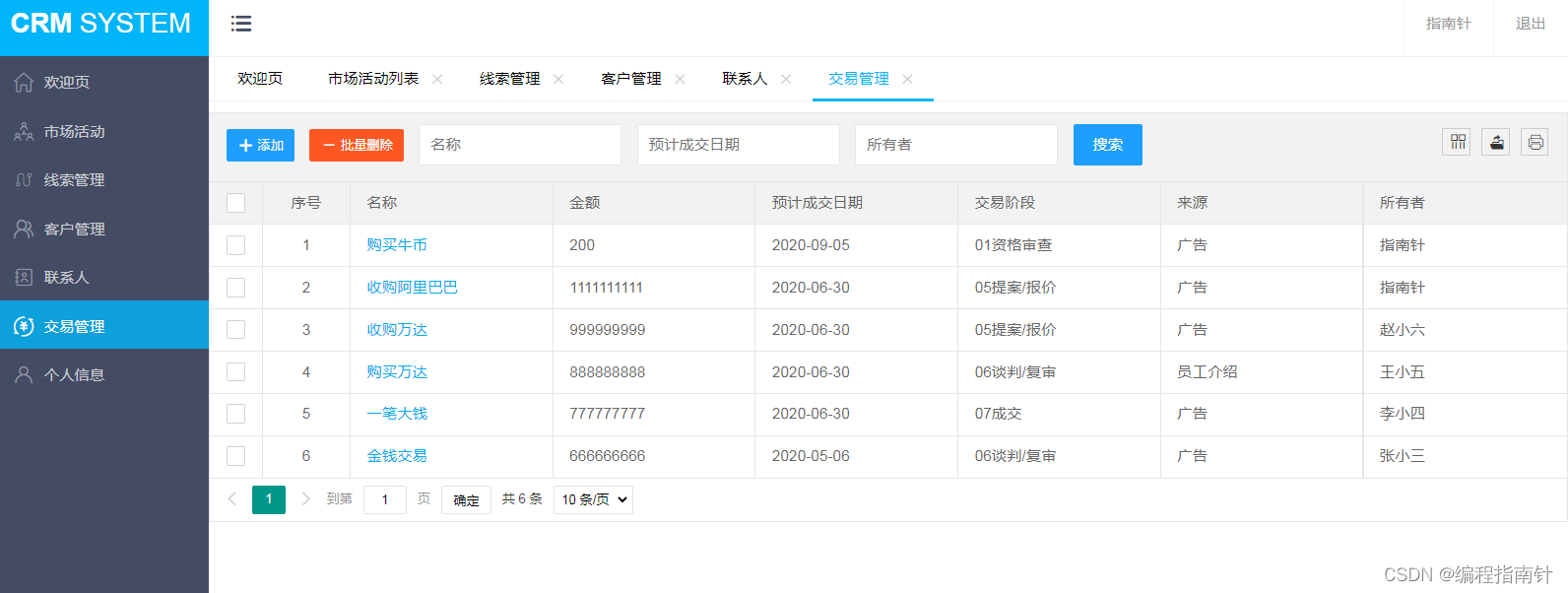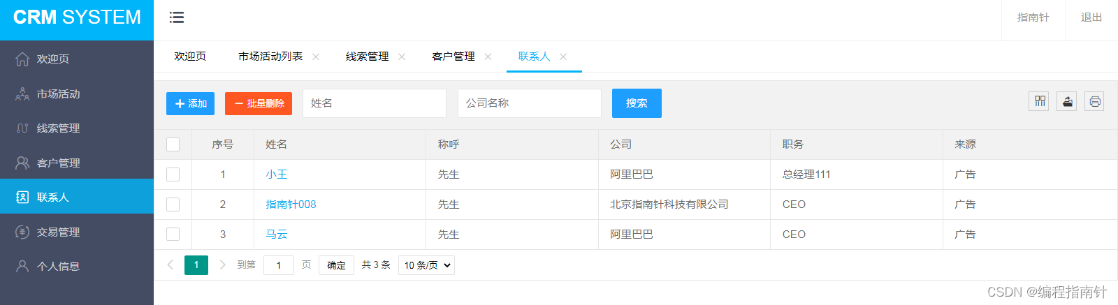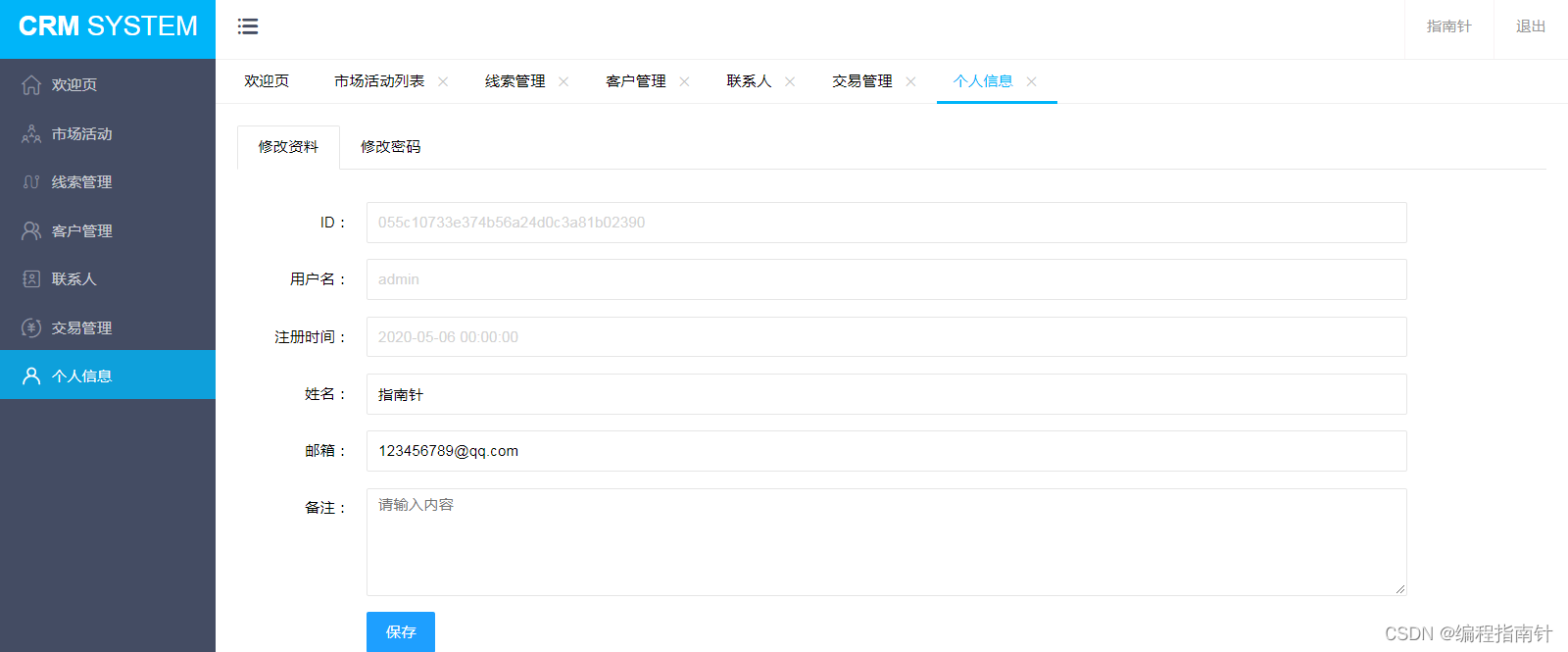 该项目主要基于JAVAWEB技术,开发了一套CRM客户关系管理系统,实现了用户登录,权限控制,数据统计,以及市场活动、线索、客户、联系人、合同的CRUD,使用Proxy实现Service层的动态代理,实现DAO层事务控制。