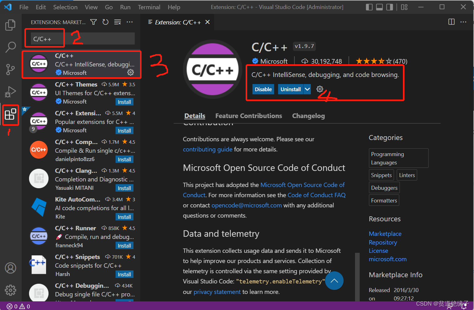 Documentation for Visual Studio CodeFind out how to set-up and get the most from Visual Studio Code. Optimized for building and debugging modern web and cloud applications. Visual Studio Code is free and available on your favorite platform - Linux, macOS, and Windows. https://code.visualstudio.com/docs/?dv=win打开VS Code, install官方C/C++扩展插件。