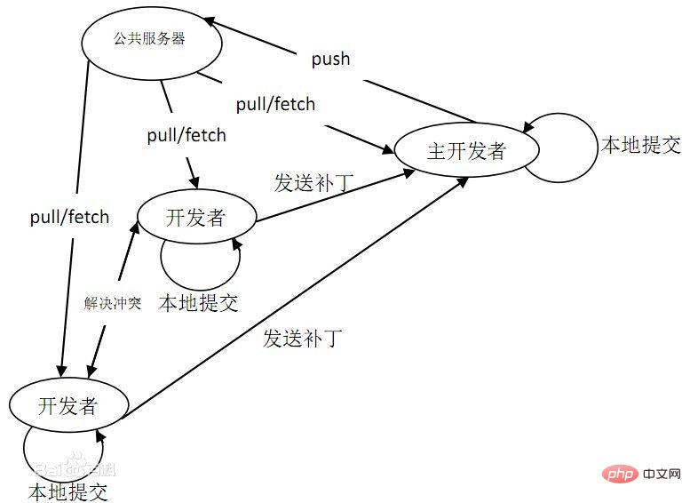 - 之后生成补丁(patch),把补丁推送到远端服务器。