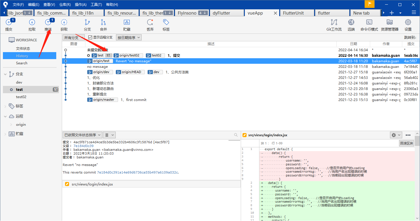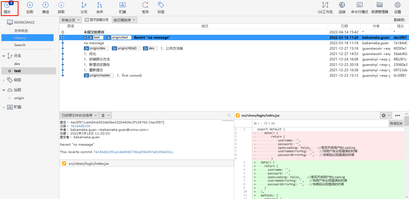 是不是很简单,来看看可视化工具如何操作。  我的天呐,来来来 继续 分支更能体会到可视化工具的好处了