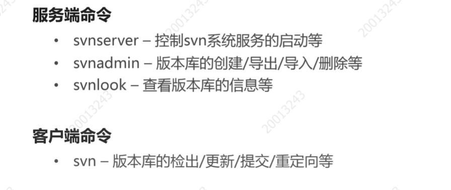 export 导出,用法与checkout相同,导出目录下无.svn隐藏文件夹,不在版本控制之下