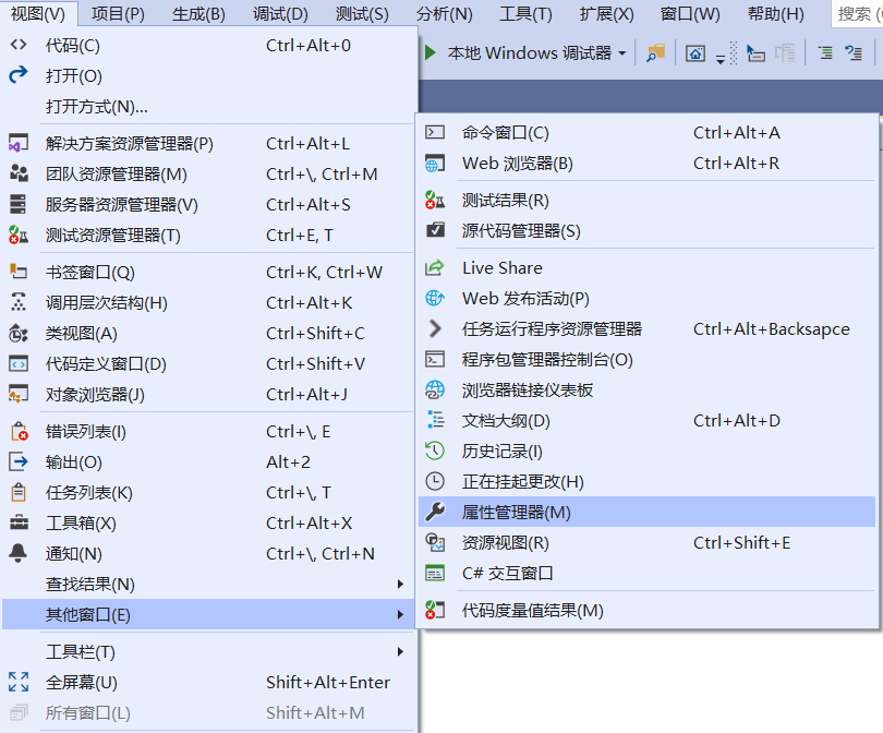 3. 依次点击:视图 –> 其他窗口 –> 属性管理器