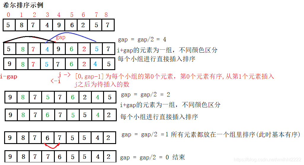 // 每次gap/2,... gap=1(将所有元素排序),gap= 0结束