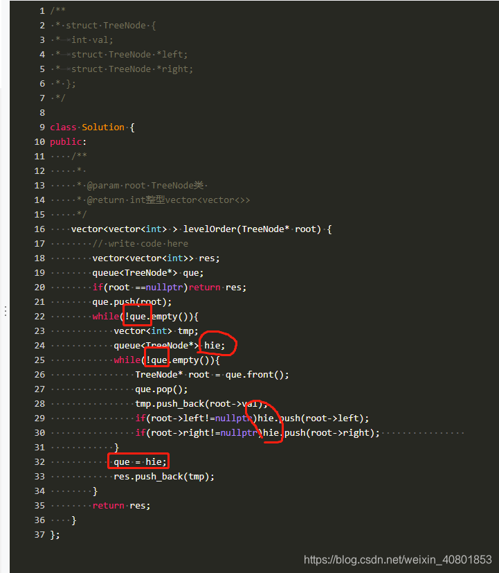 但是涉及到按层输出的话 就需要两个queue队列,其中一个队列用来保存每一层的节点