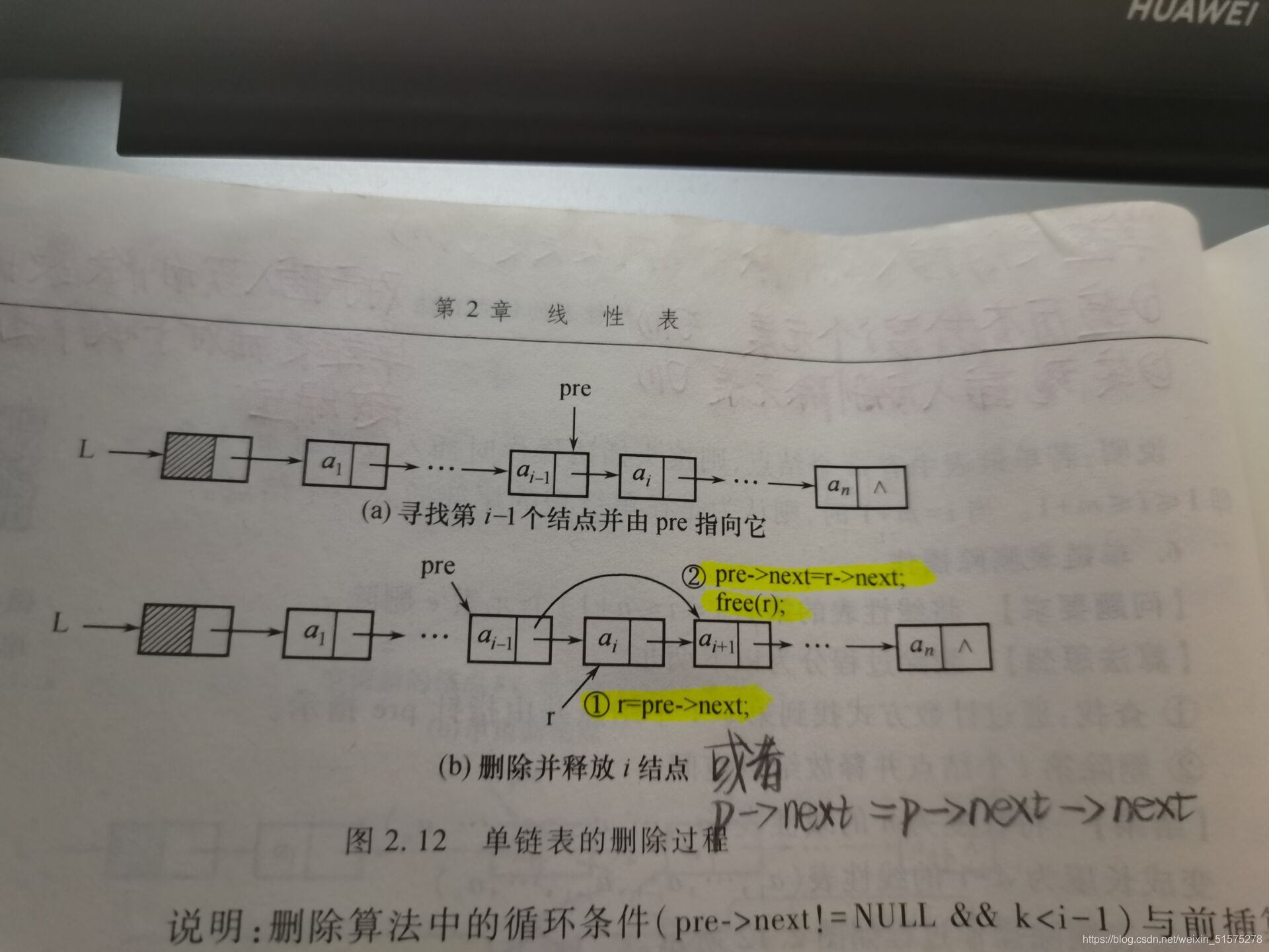 ?? ??? ?//while循环是因为p->next=NULL或i<1而退出的,因为pre->next=NULL,没有找到合法的前驱位置,说明输入的删除位置不合法
