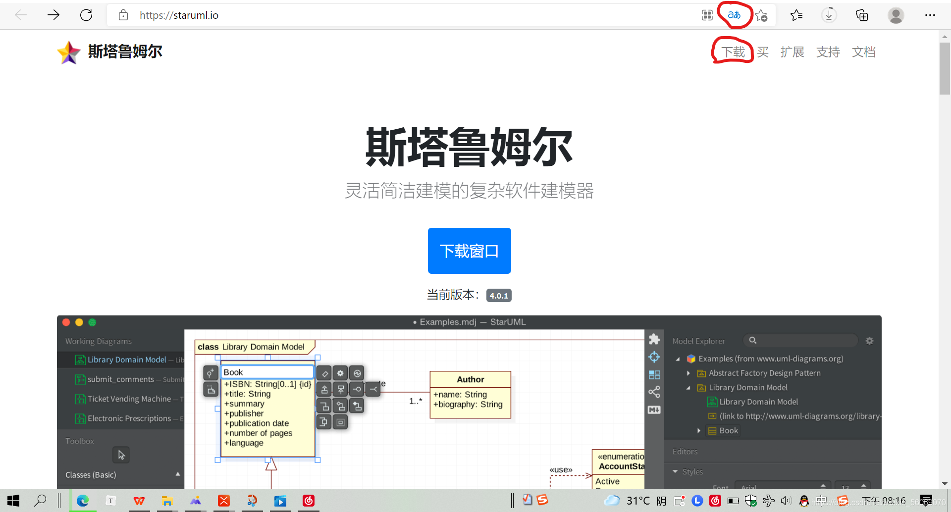 下载路径:斯塔鲁姆尔 (staruml.io)