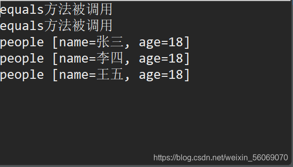 //但是你在people类加上hashCode and equals的方法(这里用到了equals的方法)就把重复的内容删除