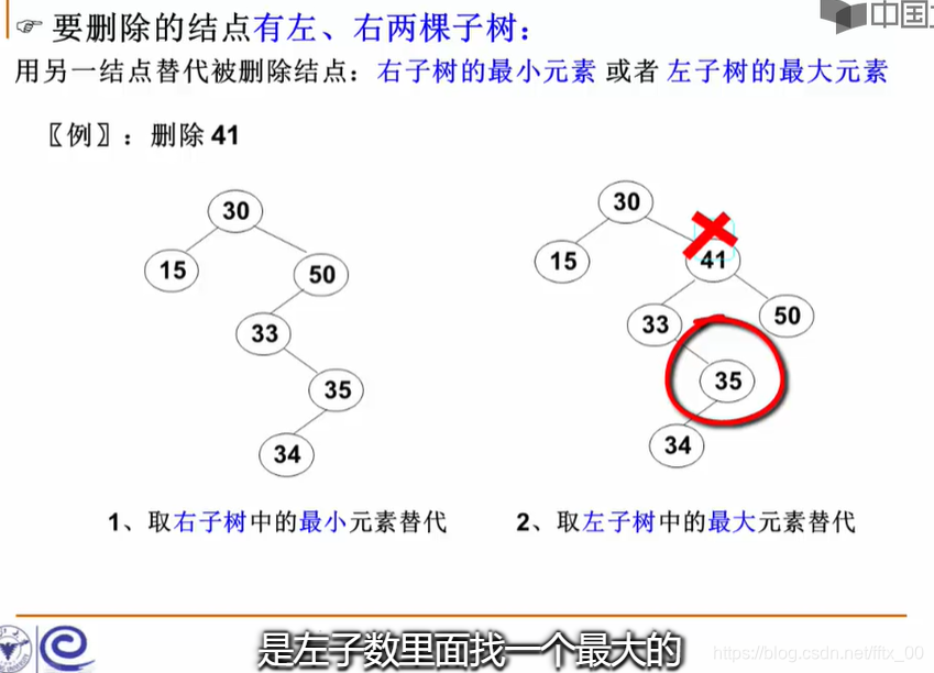 左子树的最大值或者右子树的最小值一定不是有两个儿子的结点。