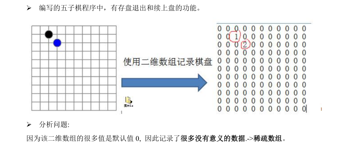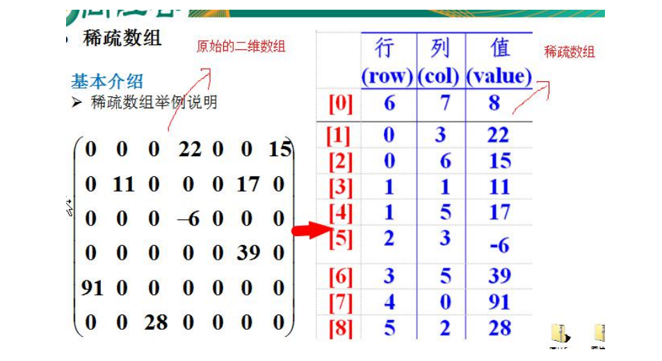 当一个数组大部分值为0,或者为同一个值时,可以使用稀疏数组来保存该数组