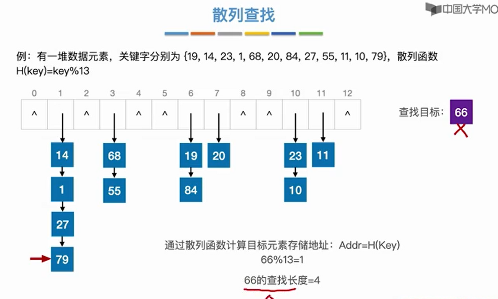 基于拉链法的查找     一共有12个元素,这些个链表第一层有6个,二层有4个。。。。  上面两个式子一样,但是下面的式子反映了冲突次数  理想状态下,没有冲突