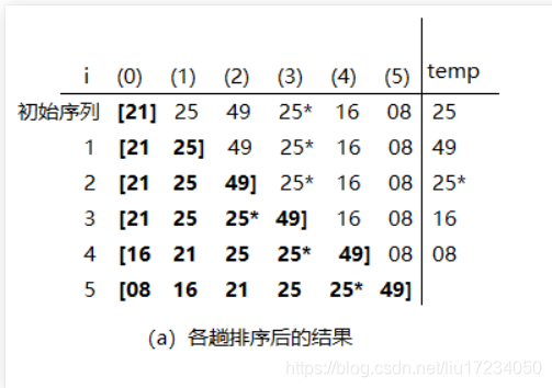 for( i=1; i<n; i++) //将各元素插入已排好序的序列中