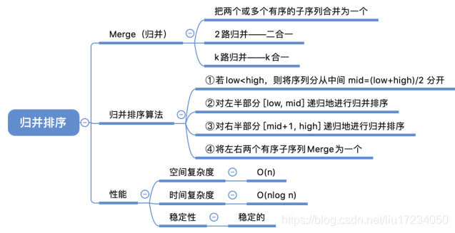 然后再按照同样的策略继续划分右边的子序列,然后归并……直到最终归并为长度为n的有序子序列